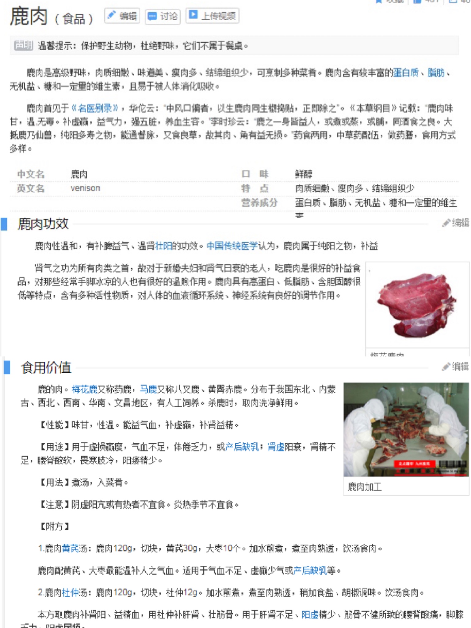 鹿肉(百度百科)